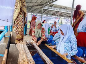 Setelah apel Merah Putih, penjelajahan berlanjut pada pengamatan langsung terhadap kekayaan ekonomi kreatif daerah. Rombongan mengunjungi sentra anyaman purun, di mana peserta didik melihat tangan-tangan terampil para perajin mengubah tanaman rawa menjadi produk bernilai tinggi. Mereka mencoba langsung menganyam, merasakan serat-serat tanaman yang lentur namun kuat di jemari mereka. Begitu pula saat melihat pembuatan kain tenun songket; dentum alat tenun tradisional yang berirama menciptakan melodi kebudayaan yang memukau. Kilau benang emas yang ditenun dengan teliti menjadi pelajaran berharga tentang kesabaran dan ketekunan yang harus dimiliki setiap peserta didik.