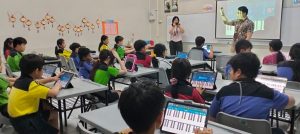 KELAS MUSIK: Tim Sekolah Nasima mengobservasi kelas yang sedang melaksanakan pembelajaran musik tradisional dengan memanfaatkan media Ipad khusus untuk pembelajaran digital.